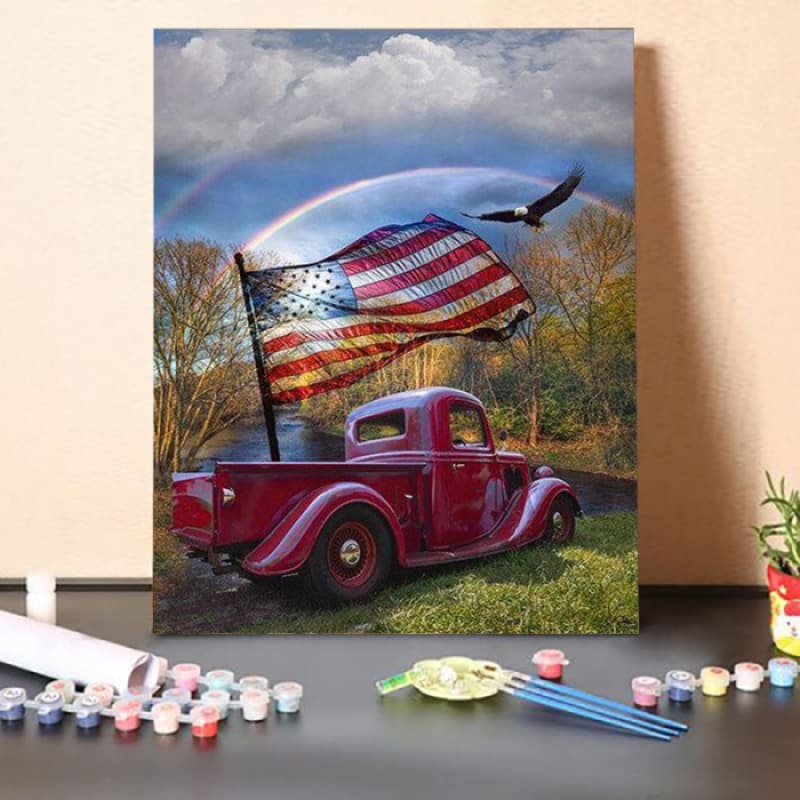 Paint By Numbers Kit -America Flag Car